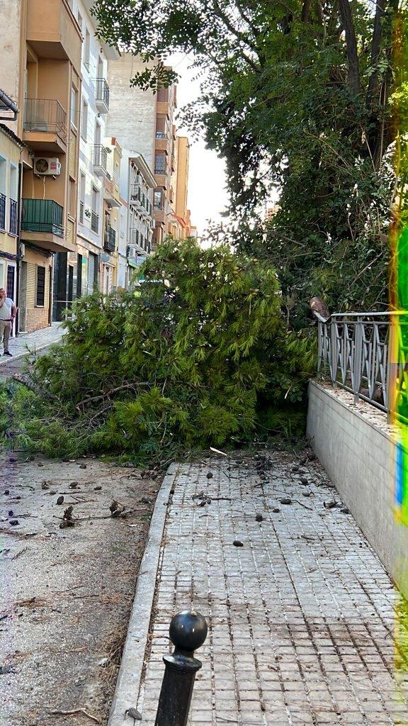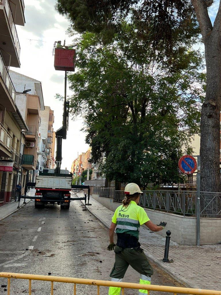 Fue necesario actuar en otras zonas del casco urbano donde se había producido la caída de ramas en la vía pública, como feria del Mueble o carretera de Villena. También para retirar ramas en la zona de la Avda. de la Feria y Avda. de Cartagena