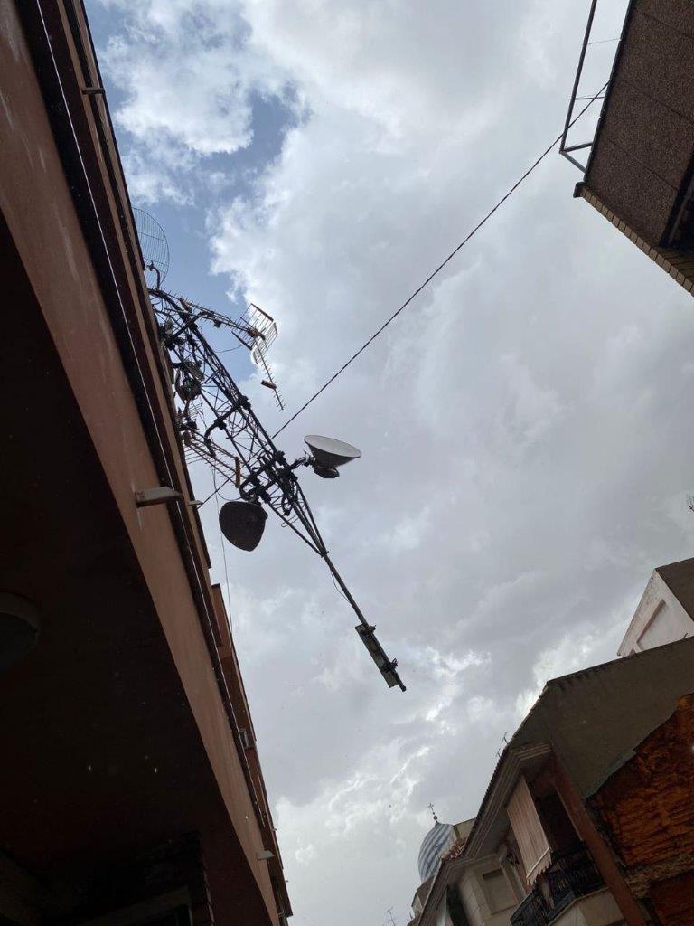 La Policía Local intervenía cortando el tráfico para solucionar los problemas generados en la vía publica. En la calle España, se cortaba el trafico para solucionar el peligro que generaba una antena de telecomunicaciones descolgada que fue retirada por los bomberos.
