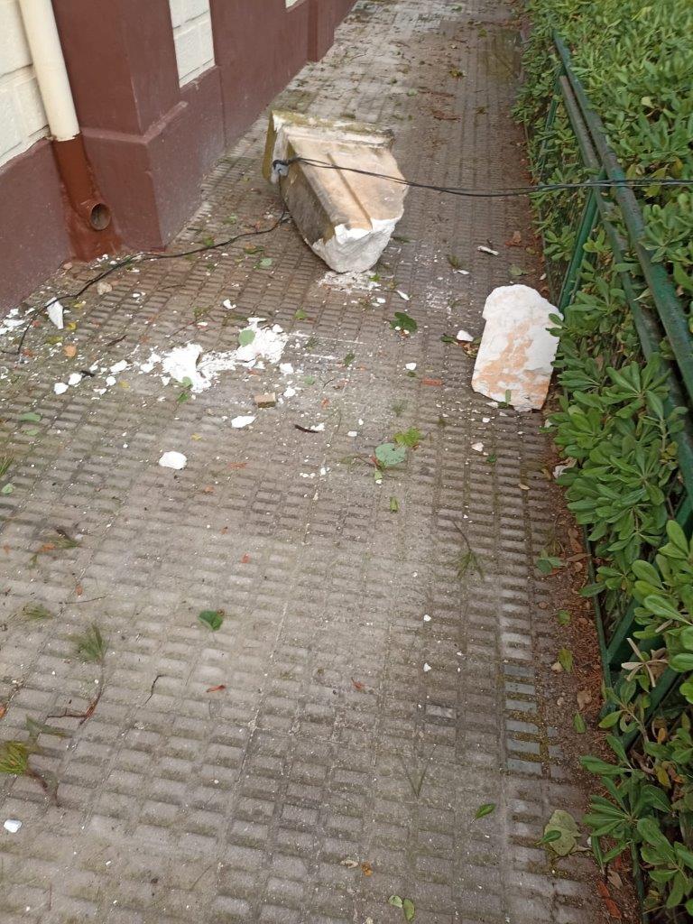 Asimismo se producía la caída de cables de electricidad en la zona de la Feria del Mueble y camino de las Artesillas y caída de cascotes en la calle Rambla. Fue necesario acotar la zona para evitar el peligro.