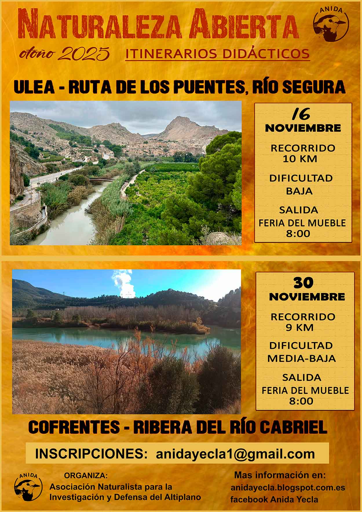 El próximo domingo 16 de noviembre tendrá lugar el tercer itinerario didáctico organizado por ANIDA, en el marco del programa “Naturaleza Abierta 2025”.
