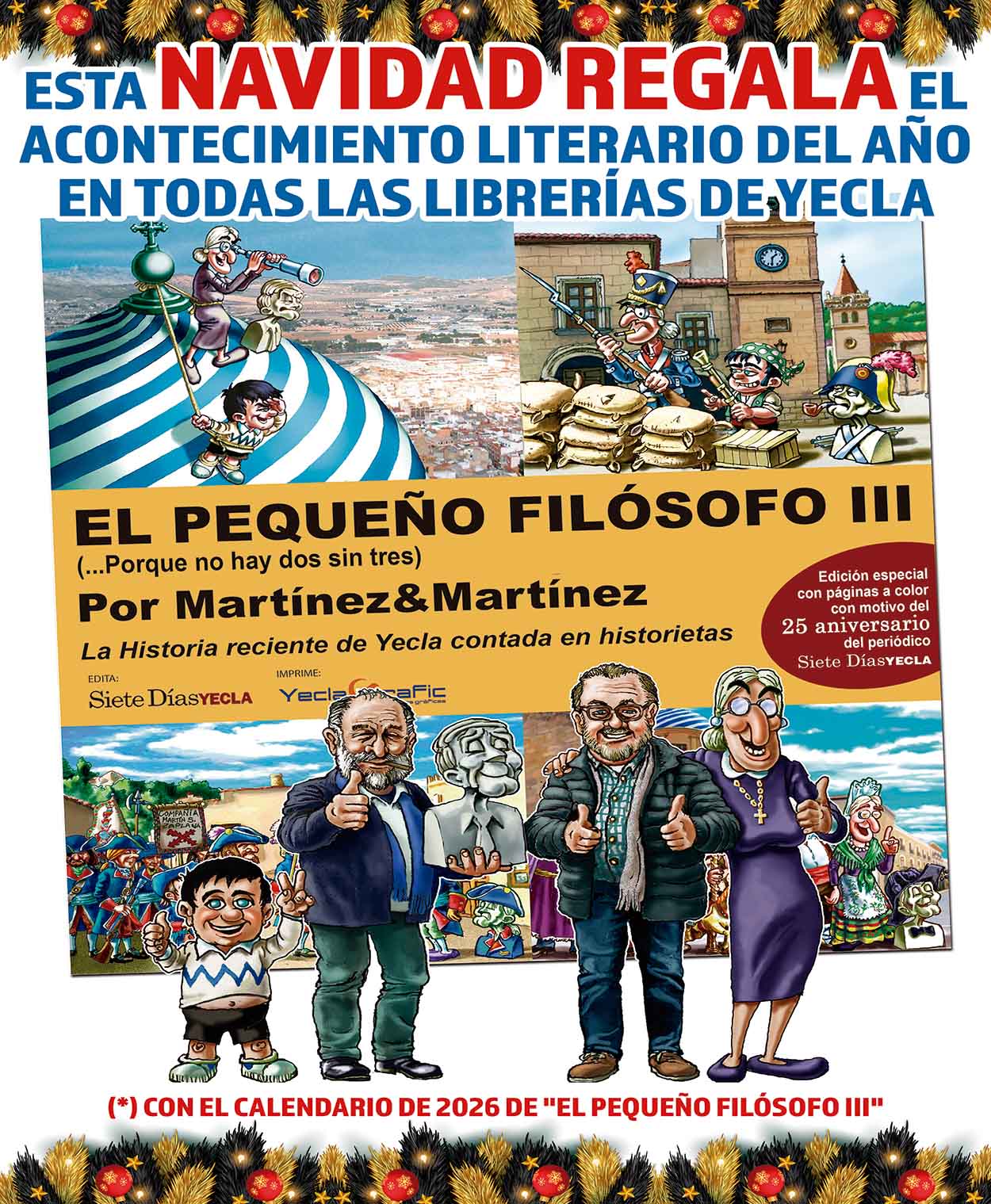 Con este tercer volumen, Martínez & Martínez consolidan una saga que ha acompañado a varias generaciones de yeclanos desde mayo del 2000. El pequeño Filósofo III es un espejo en viñetas donde el pueblo puede reconocerse, reírse y, quizá, reflexionar (y más teniendo en cuenta que es de las pocas cosas que aún no cuestan dinero). Porque en Yecla, como en el mundo, todo cabe en una historieta, siempre que haya ironía, desparpajo con un buen trago de humor para acompañar.