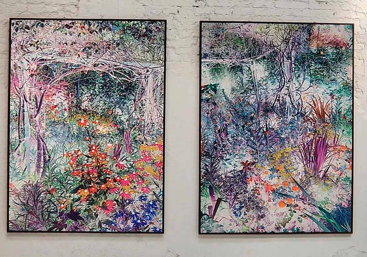 El artista trabaja con cámara analógica de medio formato, digitaliza posteriormente sus negativos y prioriza el juego de luces y colores frente a las formas. Elimina el negro y se centra en los colores primarios y complementarios, siguiendo la estela de los impresionistas, para generar imágenes que se presentan como impresiones pictóricas. El resultado son grandes piezas realizadas sobre papel de algodón Hahnemühle, en las que los jardines de Giverny aparecen como paisajes irreales.