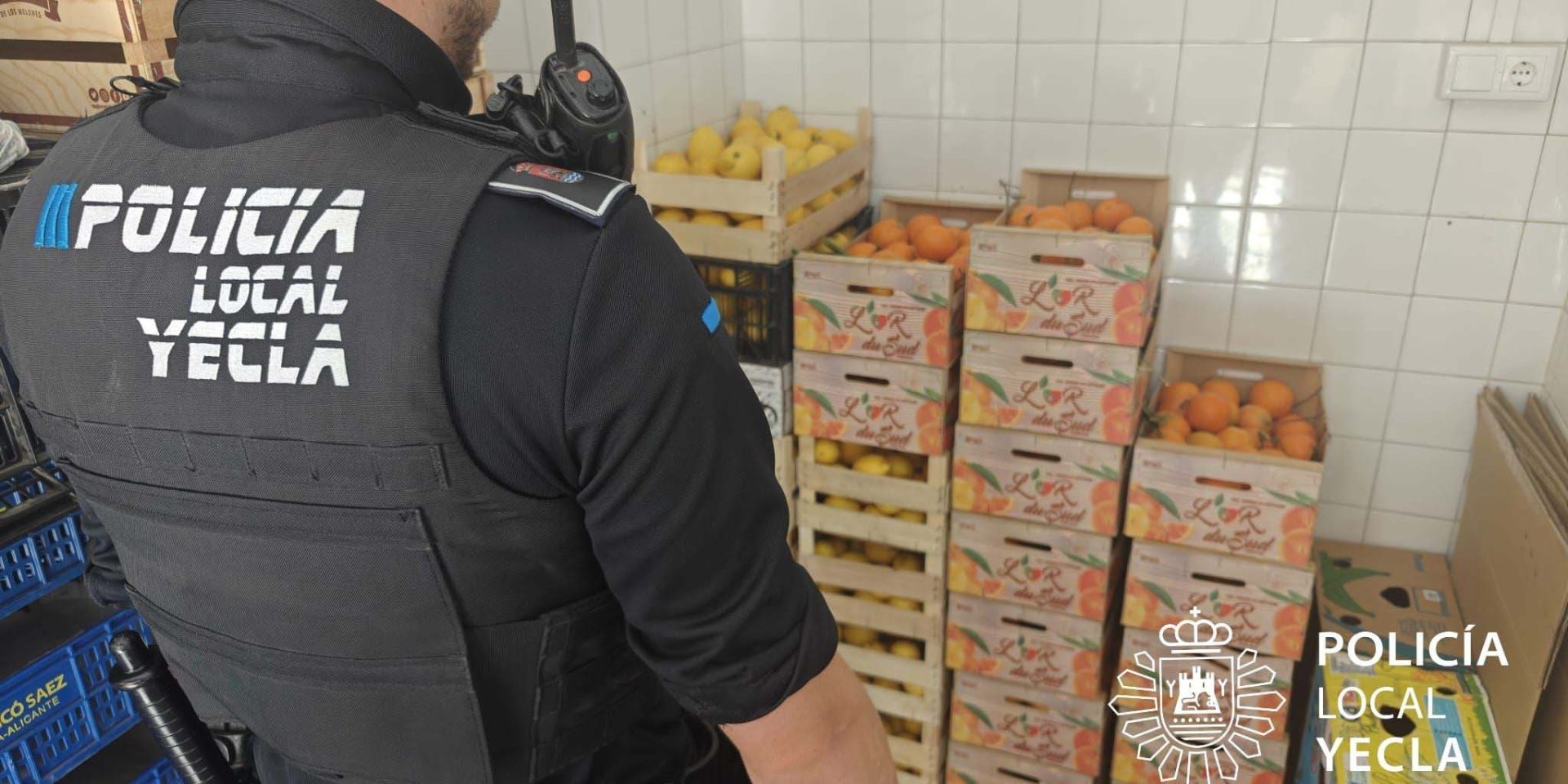 Agentes del Cuerpo de Policía Local Yecla durante la realización de sus funciones de vigilancia y prevención a pie por la zona centro observaron un vehículo estacionado de forma indebida con mercancía perecedera en su interior, cuyo conductor se encontraba ofreciendo su venta directa a viandantes y clientes de terrazas y establecimientos comerciales de la zona (la mercancía consistía en aproximadamente 200 kg de naranjas y 100 kg de limones).