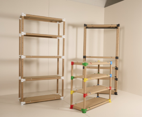 ECOrack es un diseño innovador de la empresa madrileña Somos Jumat, que se basa en muebles adaptables hechos de cartón sostenible. Es un sistema modular creado con tubos de cartón de alta resistencia y piezas metálicas únicas que permiten crear muebles adaptables a cualquier necesidad, con una sorprendente resistencia que llega a soportar 50 kg por balda. Es personalizable, con posibilidad de elegir el color que combine con el espacio.