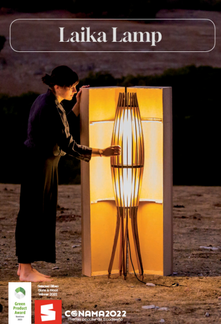 Desde Navarra, Baku Barrikupel impresiona con su Laika Lamp, una lámpara que fusiona diseño moderno y artesanía tradicional. Laika busca ser un producto sin fecha de caducidad. Sus formas escultóricas y su iluminación de ambiente buscan crear un vínculo cercano con el usuario. Realizada a partir de madera de roble sostenible procedente de barricas de vino, su diseño hace que sea ligera y versátil.
