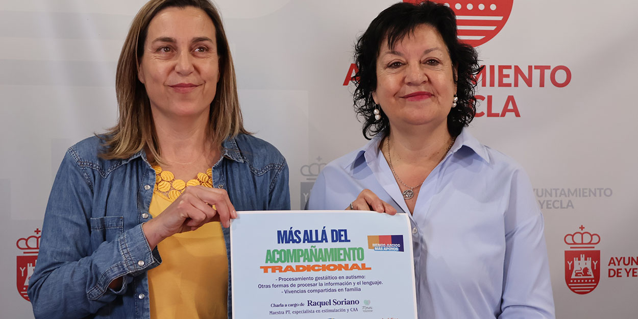 TEA Yecla llevará a cabo este próximo sábado 11 de abril una jornada dedicada al autismo en la Casa Municipal de Cultura, que incluye una charla de Raquel Soriano, del centro Meraki, maestra especialista en estimulación y comunicación aumentativa y alternativa (CAA), titulada “Más allá del acompañamiento tradicional”. La charla se lleva a cabo de nueve de la mañana a diez y cuarto. A partir de esa hora habrá un desayuno para poder interactuar con las familias y después una mesa de experiencias en las que familiares con niños o adolescentes con autismo explicarán sus vivencias y que se prolongará hasta la una del mediodía cuando terminará esta jornada. Así lo detallaban la secretaria de TEA Yecla, Pilar Rubio y la concejala de Política Social, Patricia Soriano, que animaron a las familias relacionadas con este trastorno del desarrollo a acudir este sábado a la Casa de Cultura.